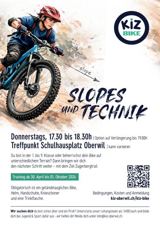 KiZ bietet tatkräftige Unterstützung für die 1418Coach-Ausbildung von Jugend & Sport (J&S) oder für diejenigen, die Jugend & Sport Leiter MTB werden möchten (ab 18 Jahren). Wenn du Interesse hast, melde dich gerne unter info@kiz-oberwil.ch. Wir begleiten dich auf deinem Weg zum qualifizierten Leiter und helfen dir, die Grundlagen des Leitens von Kinder- und Jugendsportangeboten zu erlernen