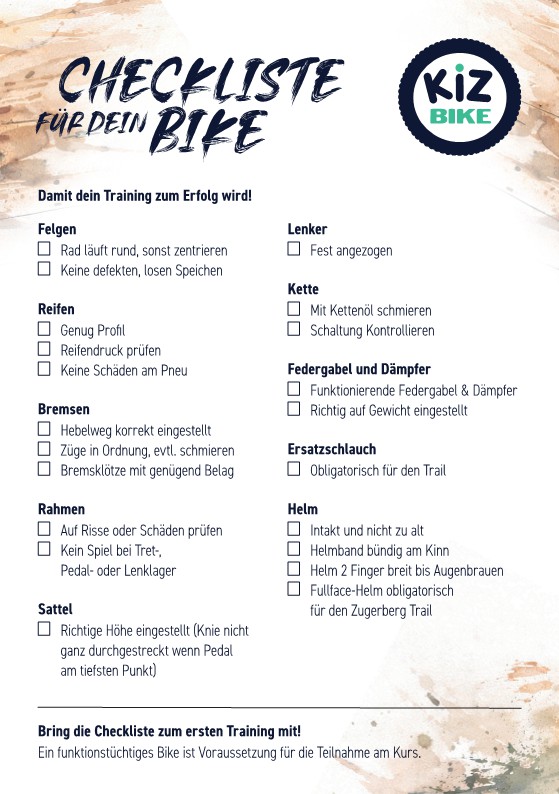 Damit dein Training zum Erfolg wird ist ein funktionstüchtiges Bike Voraussetzung für die Teilnahme am Kurs.